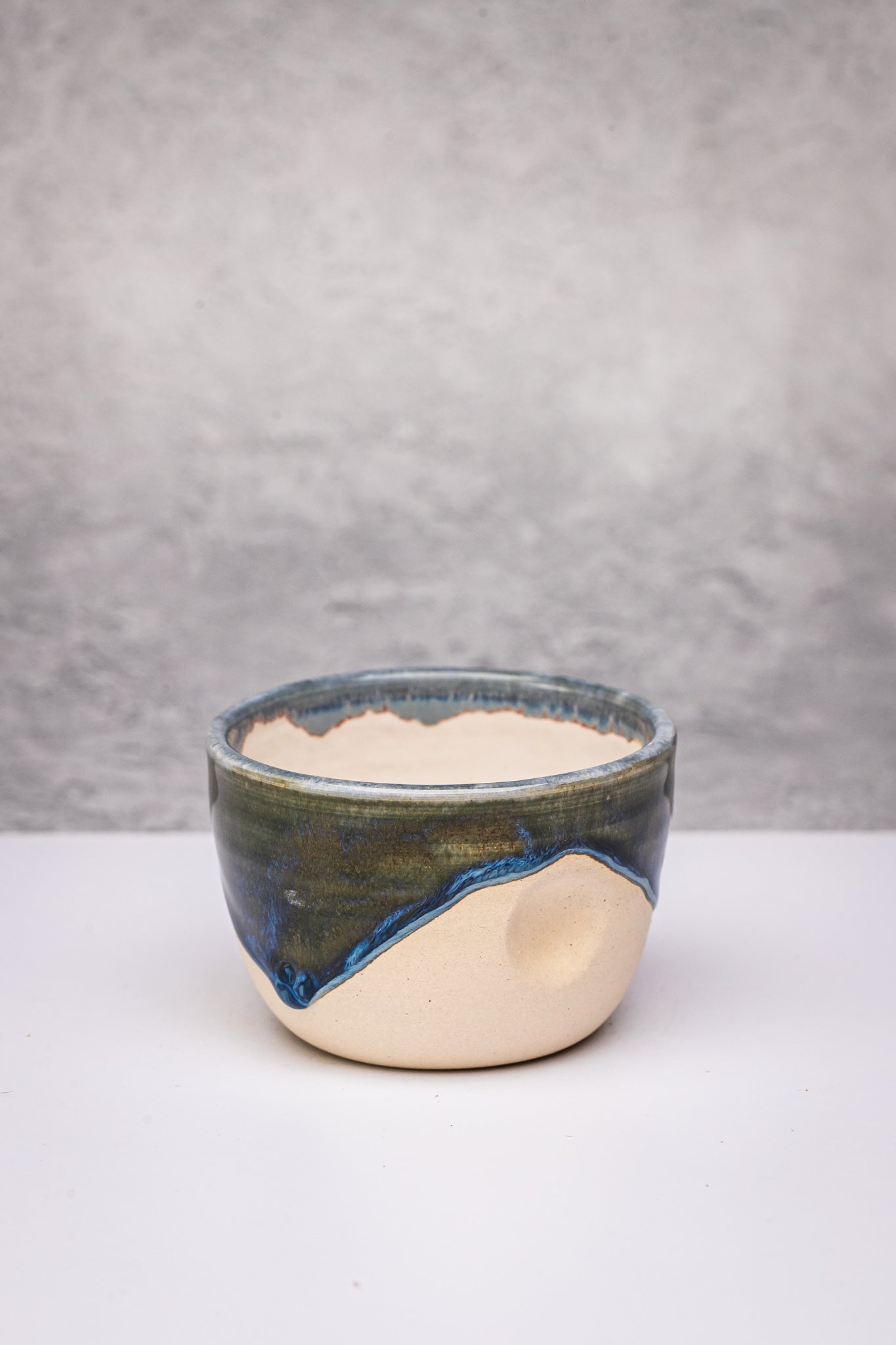 Wheel-thrown stoneware coffee cup with a gentle pinch for a comfortable hold.